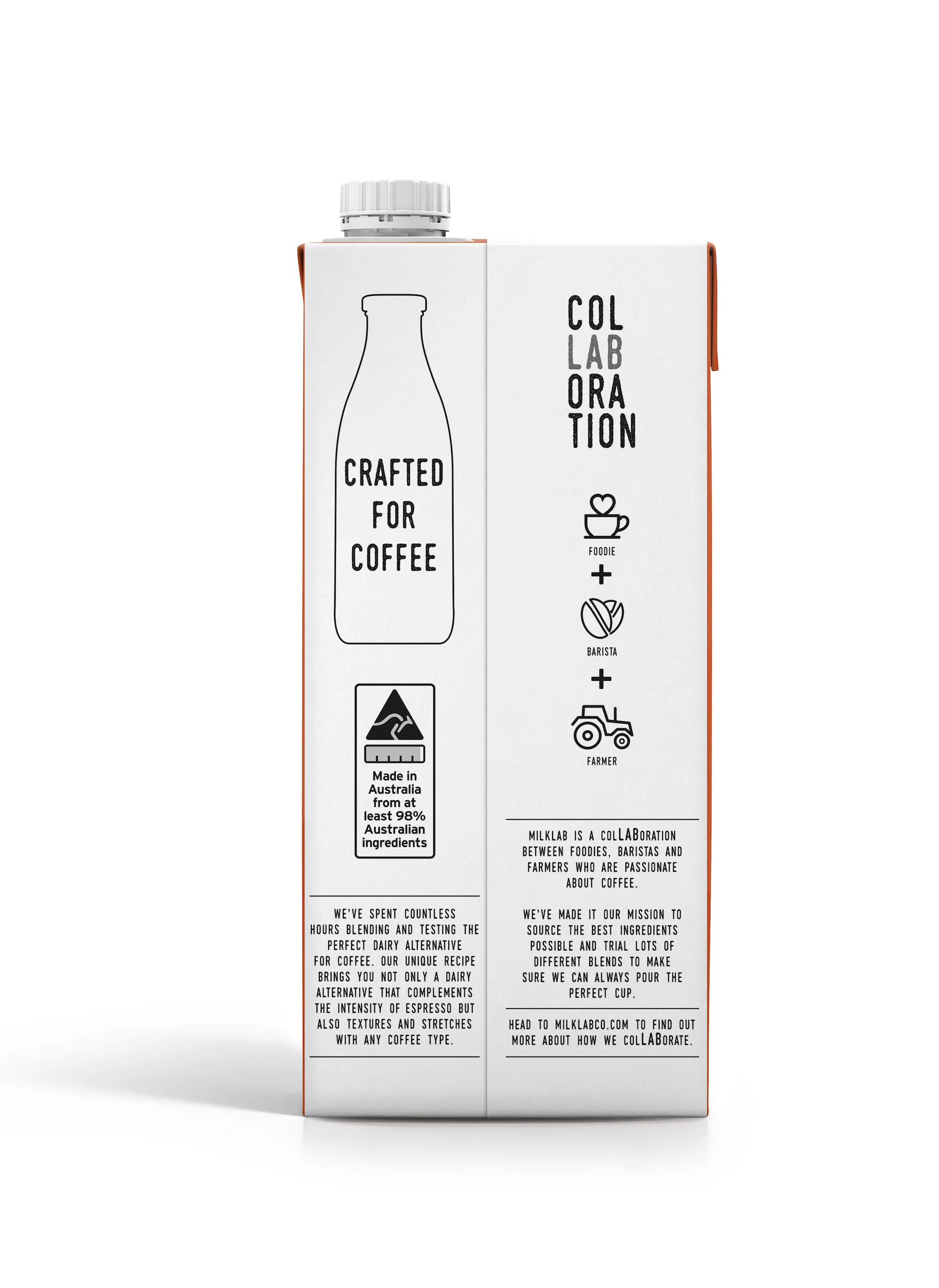 MILKLAB Almond is made for coffee — created with baristas, for baristas. It’s designed to texture and stretch with high performance and complements espresso coffee with a smooth nutty flavour and a rich, velvety mouthfeel.