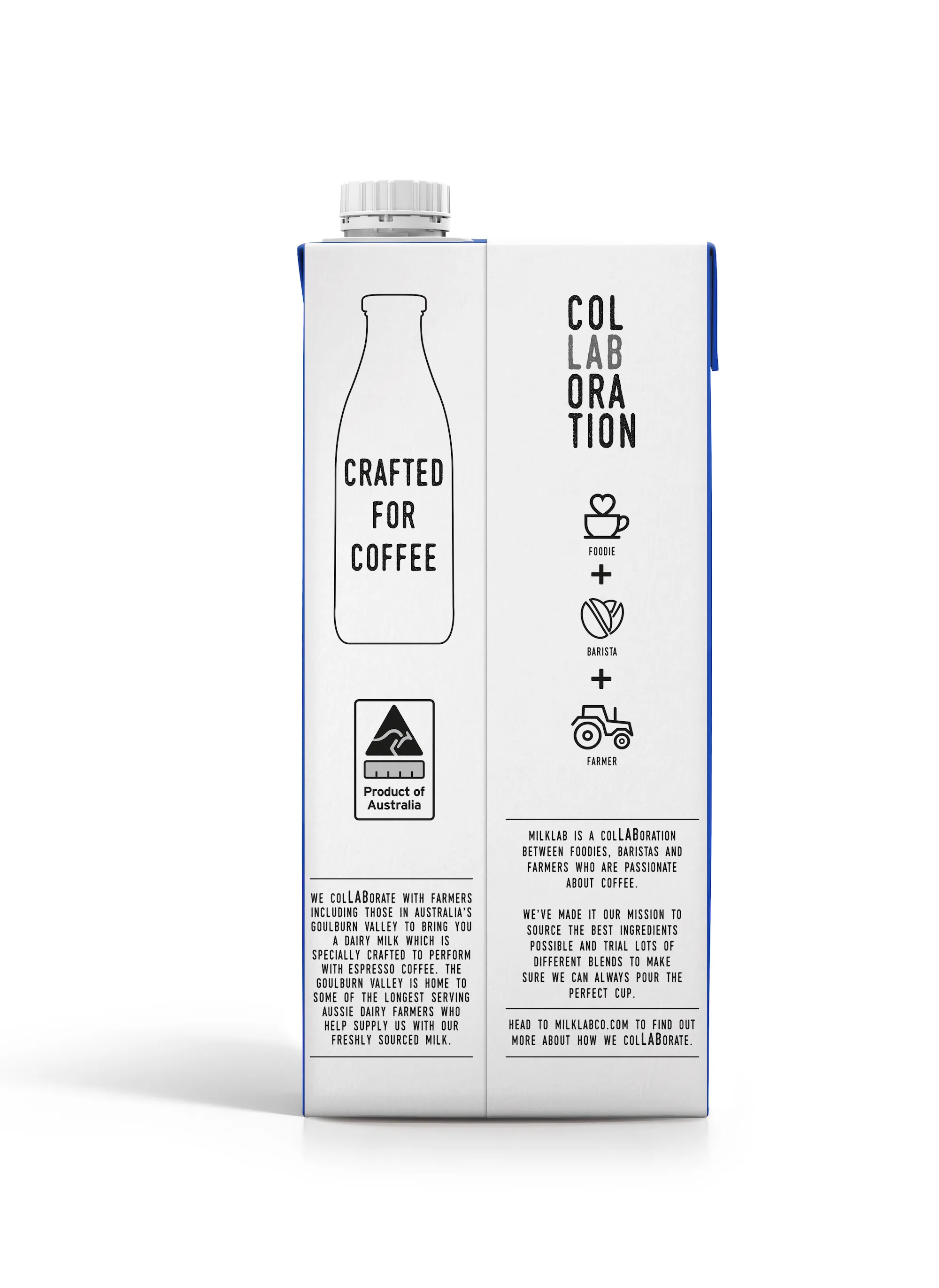 MILKLAB Dairy is a high-performance full cream barista milk developed in colLABoration with Australian dairy farmers to elevate the café coffee experience.
